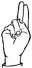 На ћирилици написано ШАЛЕ ЧАКАРАНОВИЋ састоји се из 15 слова [?]. Исписано ћириличном једноручном азбуком за глувонеме: